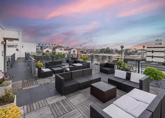 Die 2-Zimmer- Chic And Elegant 2-Bedroom Haven W/ Roof Deck befindet sich im Stadtteil Koreatown und bietet private Parkplätze und WLAN.